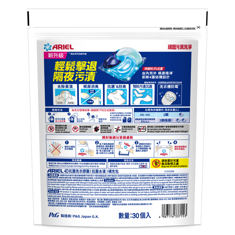 ARIEL 4D抗菌洗衣膠囊30顆 抗菌去漬