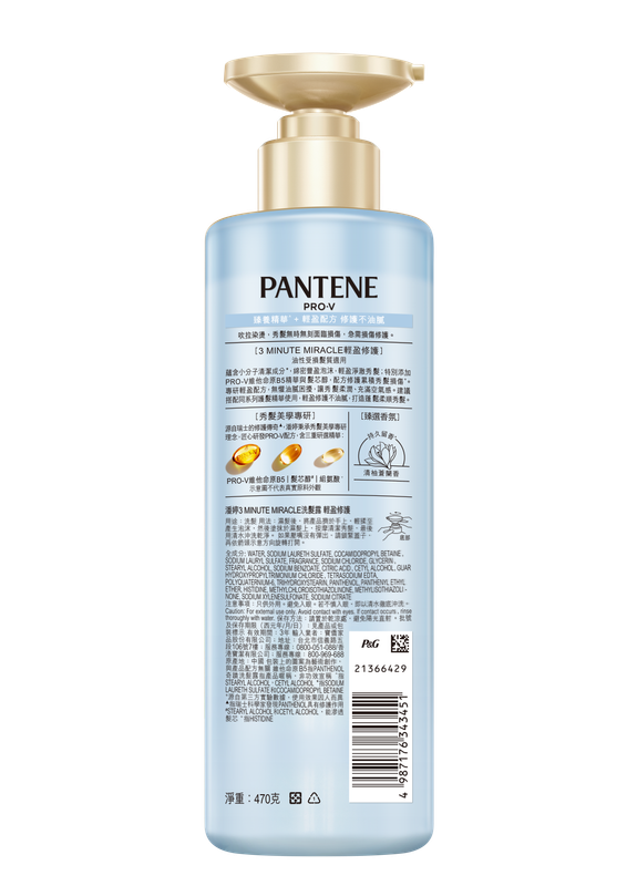 【潘婷】3 MINUTE MIRACLE輕盈修護洗髮470G